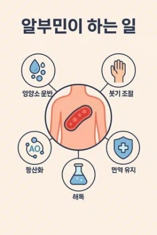 알부민은 눈에 보이지 않지만 우리 몸에서 매우 중요한 역할을 한다. 균형 잡힌 식사와 건강한 생활 습관을 통해 알부민 수치를 정상 범위로 유지하는 것이 전신 건강 관리의 기본이다.